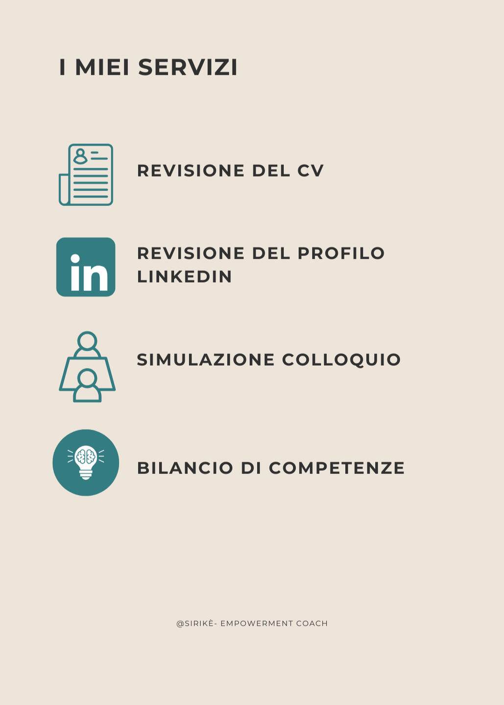“Sirikè” è una parola che richiama il vento e il mare, simboli di orientamento e movimento. Un invito a fermarsi, ascoltarsi e scegliere con consapevolezza la propria direzione.Aiuto le persone a ritrovare chiarezza e direzione, esplorando sé stesse con curiosità e attenzione.
